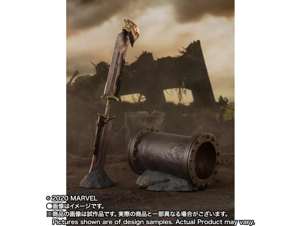 Measuring around 7.6 inches tall, this final battle edition comes with the Infinity Gauntlet, interchangeable hands, his double-edged sword, and a diorama base.