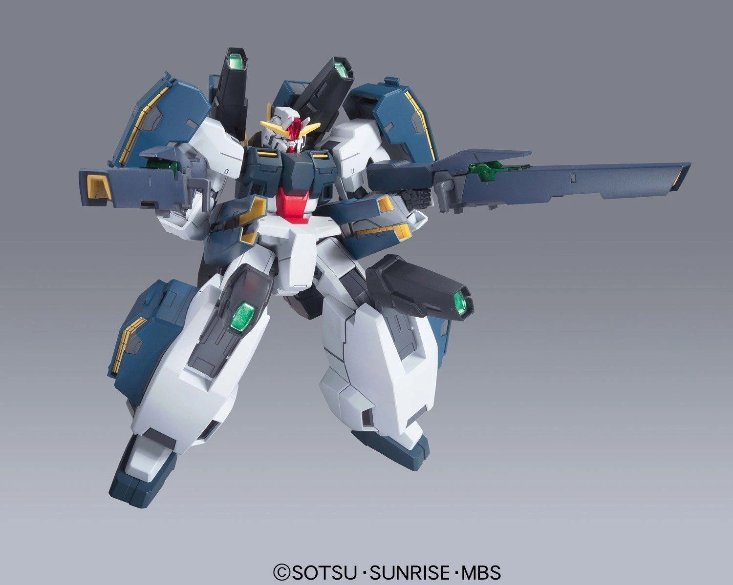 Packed with a good balance of defensive and offensive equipments for the final battle in the second season of the “Gundam 00” anime, Seravee Gundam GNHW/B is now offered as a HG snap-fit plastic kit from Bandai! The Mobile Suit comes molded in color and will be fully articulated with polycapped joints upon completion. Includes a pair of GN Bazooka II, four GN Cannons, and four GN Field Generators. The GN Cannons on its waist and the GN Field Generators can slide open. GN Cannons on Seravee Gundam’s waist and the included GN Beam Machine Gun can be used on HG Seraphim Gundam (sold separately). A sheet of foil stickers is included. Note: The Action Base 2 Sparkle Clear Green display base shown in the pictures below is not included.