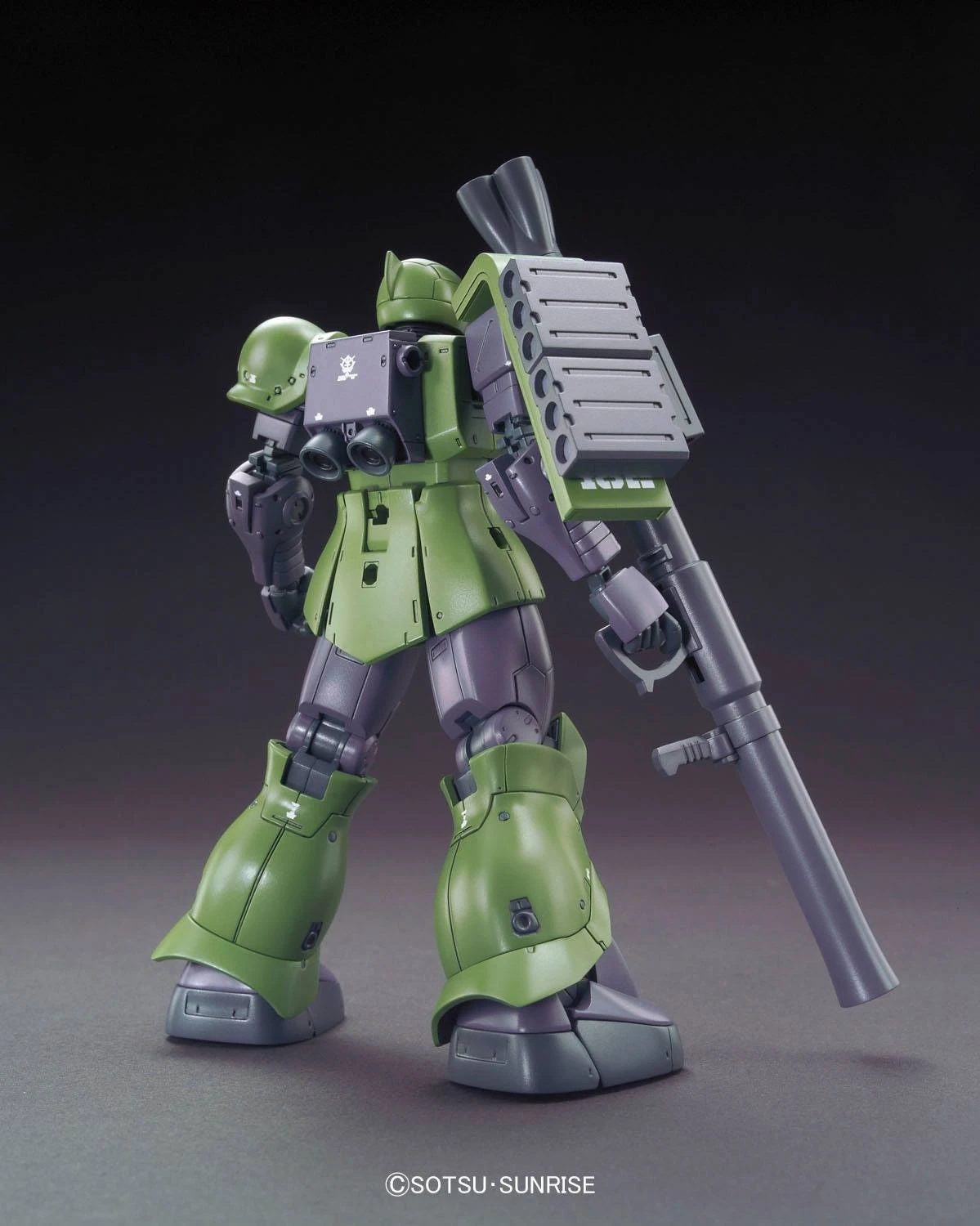 The Zaku I as used by Denim and Slender from the animated adaptation of “Gundam The Origin.” Kit comes with parts to build either pilot’s personalized machines. Weapons include large anti-ship rifle, bazooka with interchangeable cartridges, zaku machine gun, and heat hawk in sheathed and battle-ready forms. Weapons can be mounted on the body through various hardpoints.