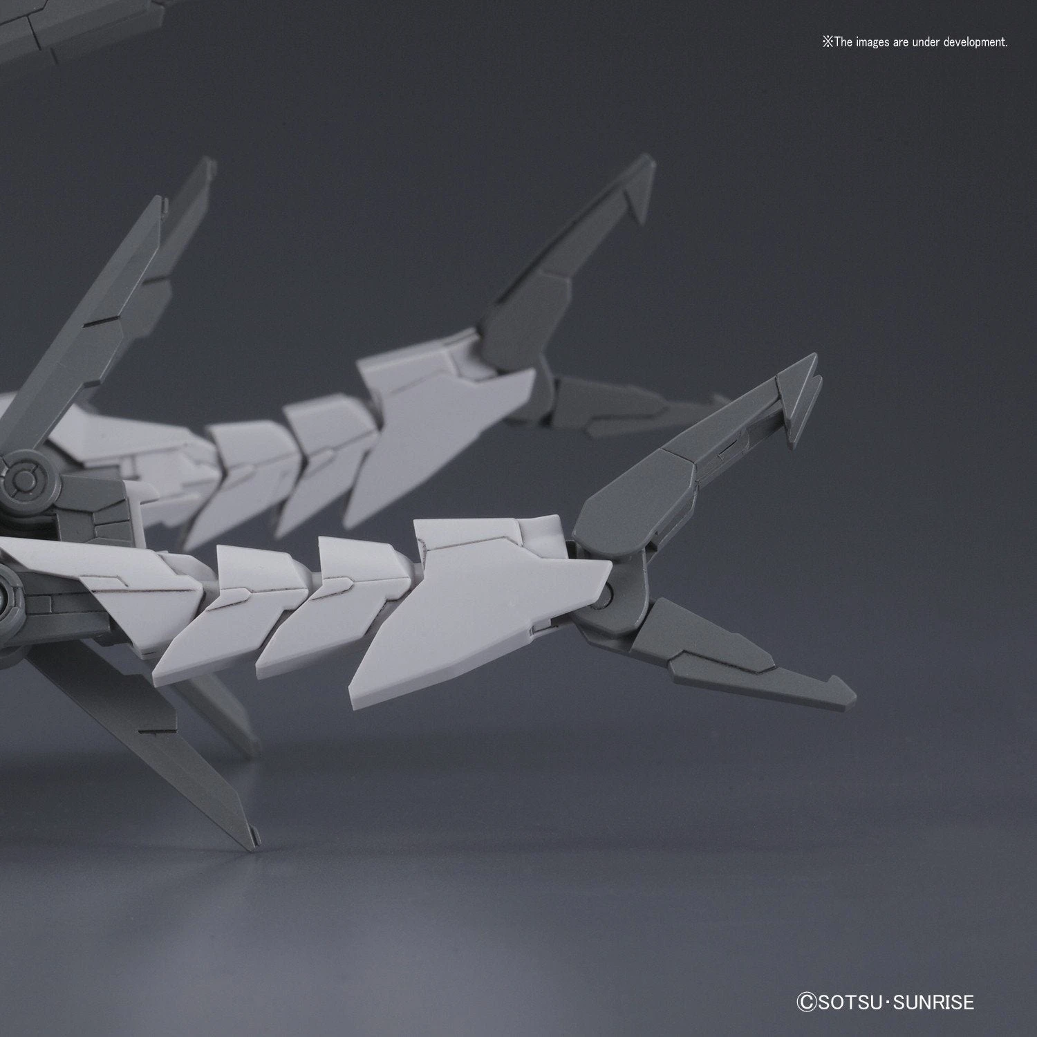 The Reversible Gundam as seen in the Gundam Build Fighters Battlogue video shorts is based off the Reborns Gundam from Gundam 00. Features a transforming gimmick to recreate its creature like “Tank Mode.” Includes GN Beam Pistols, GN Dragon Claws which can move independently, and 2 GN Beam Sabers.