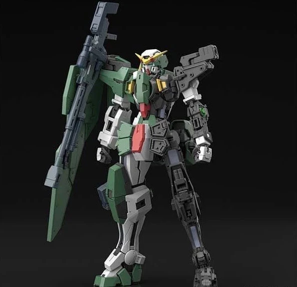 This kit features a head gimmick with pop down camera, unfolding GN Full shields, open missile hatches in waist and knee parts, and deployment gimmick of rear GN thrusters. Includes GN Sniper Rifle with Tripod unfolding mechanism, GN Beam Pistols.