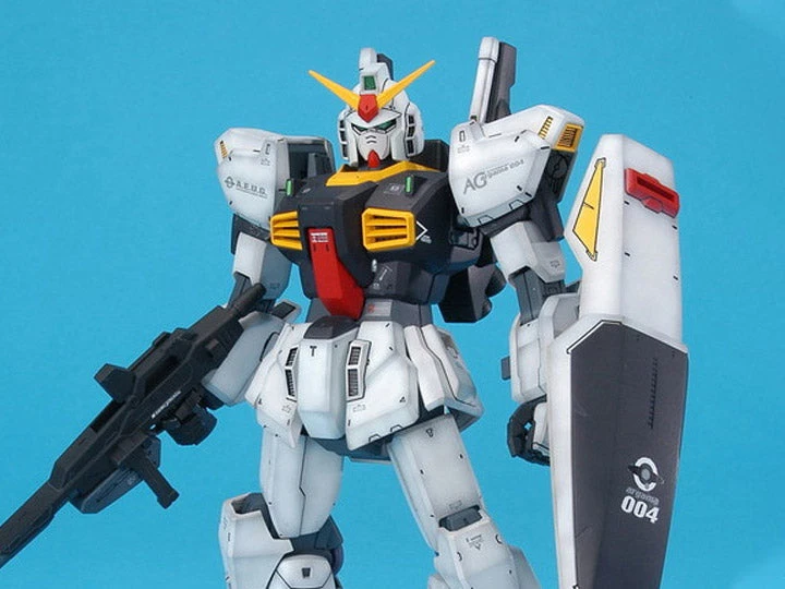 This Master Grade (MG) model kit features the Gundam Mk 2 Ver 2.0 as seen in the “Zeta Gundam” anime and features styling and engineering found on the previously released larger PG Gundam MK 2, but shrunken down and refined. Includes beam rifle, bazooka, beam sabers, ammo, shield that can retract and optional head Vulcans. A display hangar for recreating launching and maintenance scenes is included for the AEUG version.