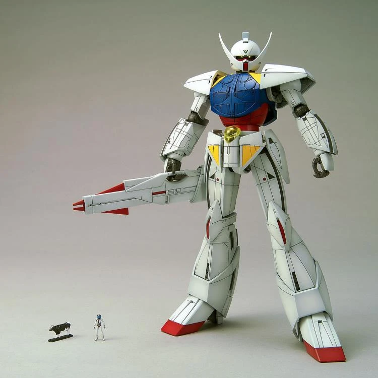 Based on its appearance in Turn A Gundam, the titular Mobile Suit joins the Master Grade 1/100 scale model kit series! This exclusive and unique model features an opening and closing chest hatch when completed—along with an in-scale Loran Cehack figure that can fit inside the Gundam and, surprisingly, a tiny cow figure.