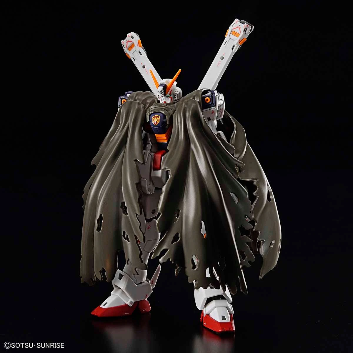 The RG Crossbone model kit comes with a variety of weapons, including Zanbuster, 2 brand markers, heat daggers, beam sabers, beam shield, anti-beam coating cloak with a pre-molded combat damage, scissor anchors, feet heat daggers, and a pilot figure.