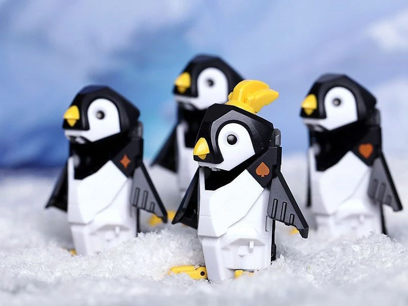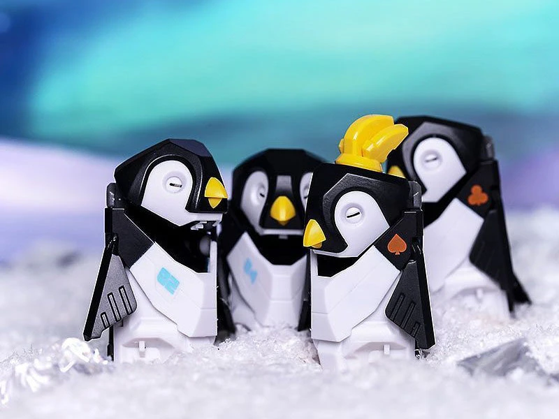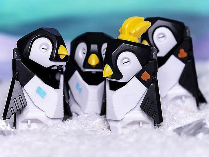 The IceQube BeastBox item from 52Toys is different from any other that’s come before — it’s four figures that can combine into one, and even better, they’re penguins! Â You can change the expression of their eyes by turning the gear under the chin, and you can also display them huddled together in pairs, as well as all together in one cube.