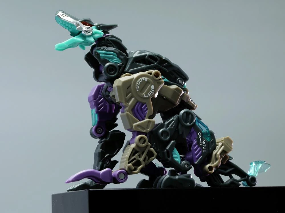 BeastBOX is an original series of robotic-style creatures that transform into cubes. The BB-31 Firmhand has a robotic wolf creature mode and features a black, purple, silver, and teal color scheme.