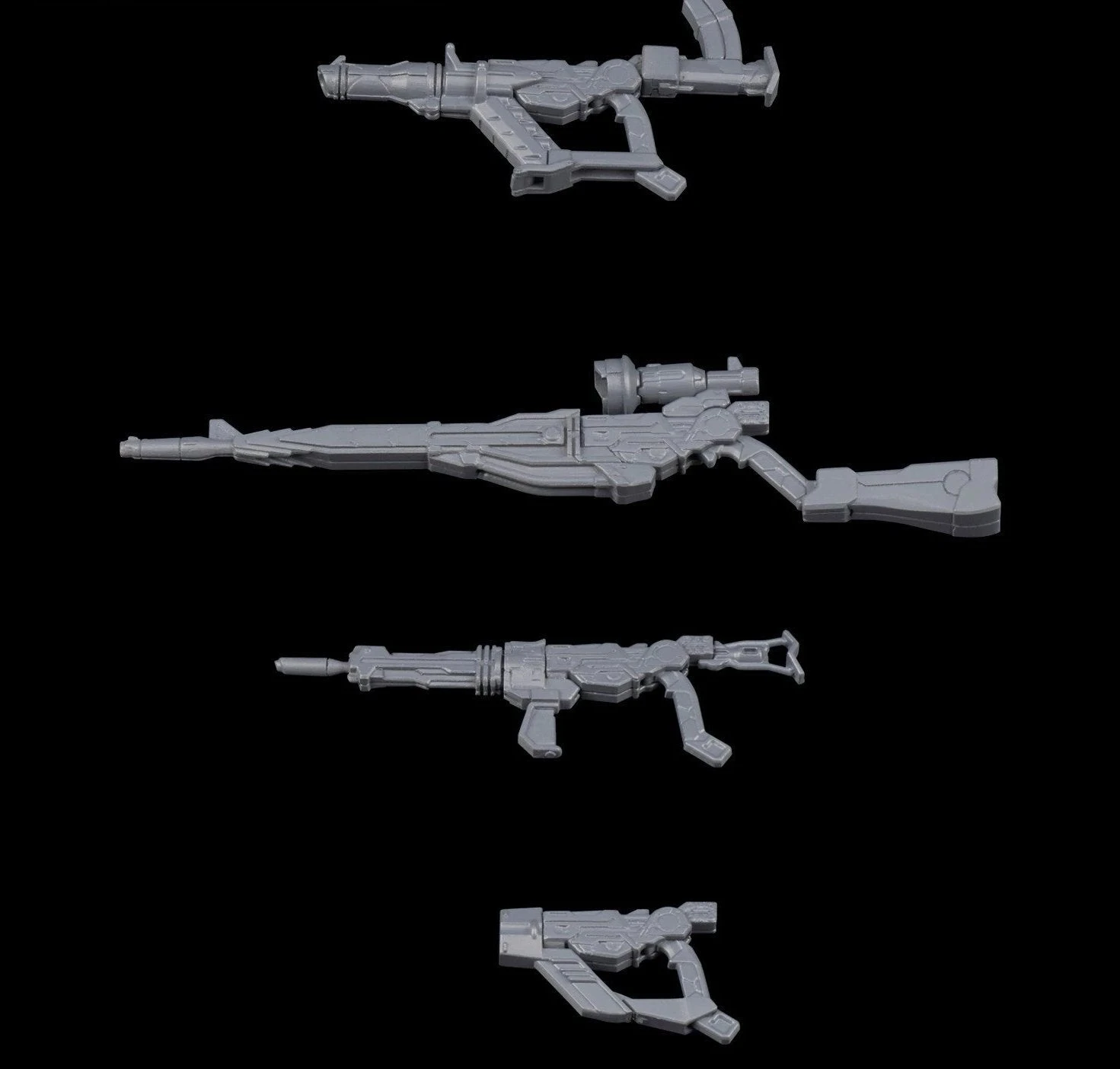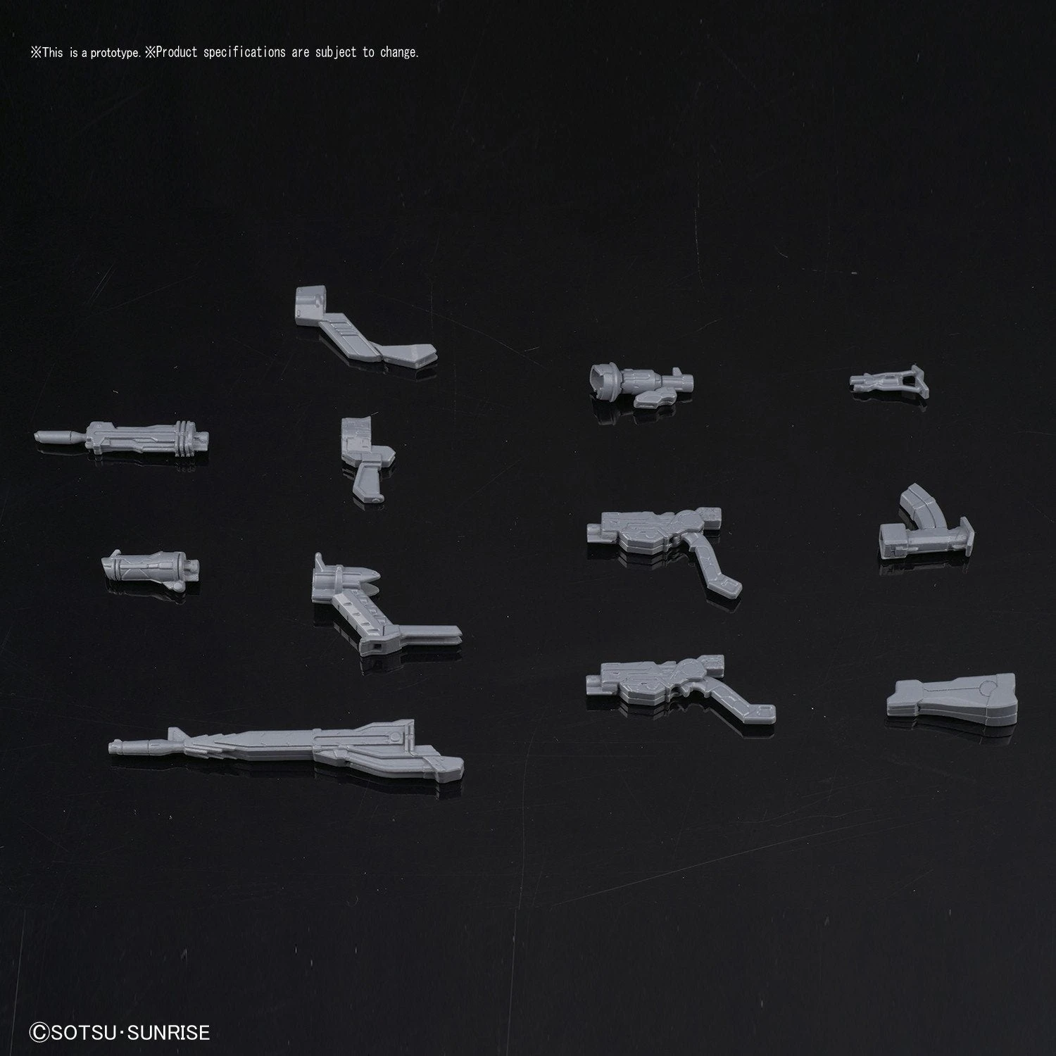 Various weapon parts you can combine to customize your 1/144 model kits are making! There are 12 different weapon parts that you can use and combine to create a variety of different weapons. These go especially great with any models that are themed after the Earth Federation. Set includes gun body parts x2, 3 barrel parts, 3 forend parts, 3 stock parts, magazine parts, and scope part. Runner x2. Instruction manual x1.
