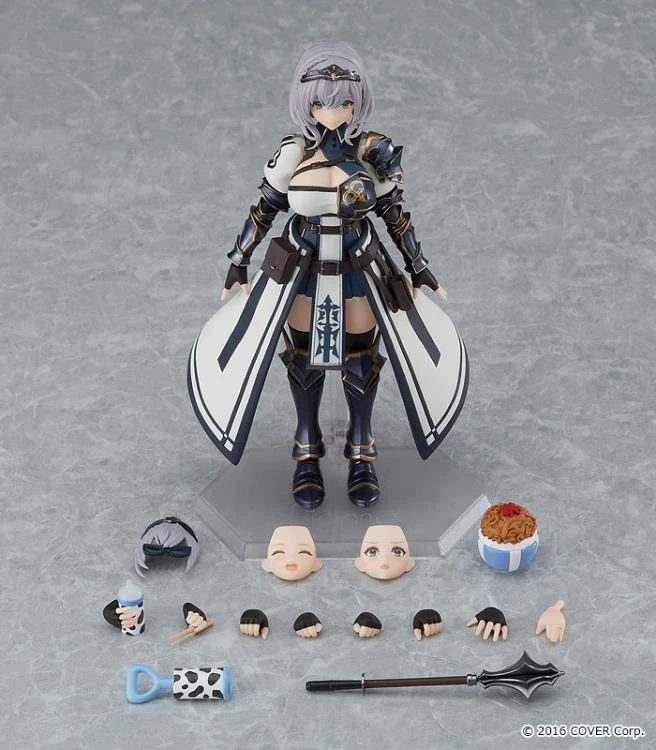 From the popular VTuber group “hololive production” comes a figma action figure of hololive 3rd Generation fluffy, meatheaded knight VTuber Shirogane Noel! She comes with three face plates including a smiling face, a face with closed eyes and an angry face. Her mace, a beef bowl, a pair of sunglasses, a rattle and a baby bottle are included as optional parts. A left hand part with a ring on her ring finger is included too!