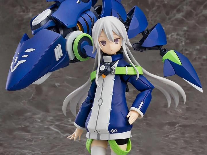 The first Act Mode product is Mio and the shark-shaped sacred beast Type15 Ver2 from POCO’s original work “Navy Field 152”! The fully-painted complete action figure Mio includes Type15 Ver2’s Chainsaw Mode form as well as her high efficiency hoe she uses for farming as optional parts, allowing you to display her right out of the box! The sacred beast Type15 Ver2 is included as a simple plastic model kit, and can also be displayed in High Mobility Mode using interchangeable parts.
